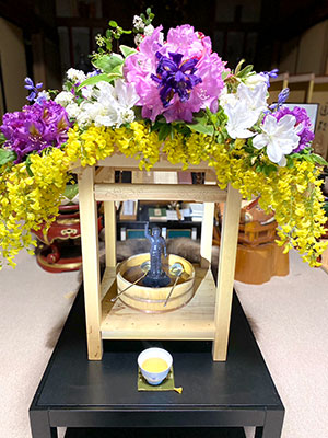 | 5月8日 お釈迦さまの御誕生を祝うお祭りです。 誕生されて7歩歩き、「天上天下唯我独尊」と言ったのは有名な話です。 その時、天が喜んで甘露の雨を降らせたと言う伝説から日本では甘茶を掛けるようになりました。 本来なら4月8日ですが、この地方では花が咲く関係で1ヶ月遅れの5月8日に行われます。 |